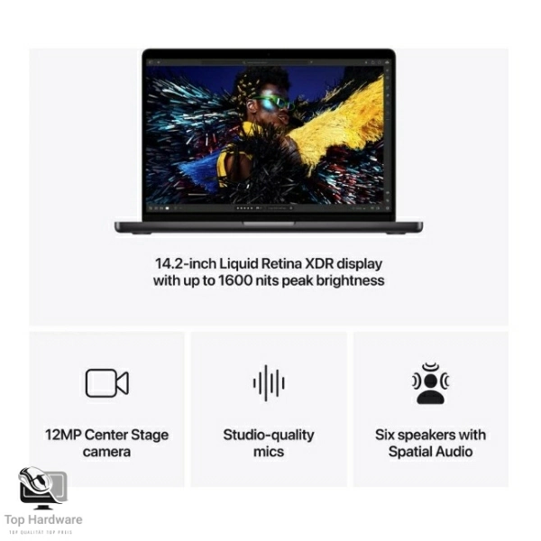 Mit einer Akkulaufzeit von bis zu 22 Stunden und dem beeindruckenden Liquid Retina XDR Display mit bis zu 1600 Nits Spitzenhelligkeit ist es kompromisslos „Pro“.